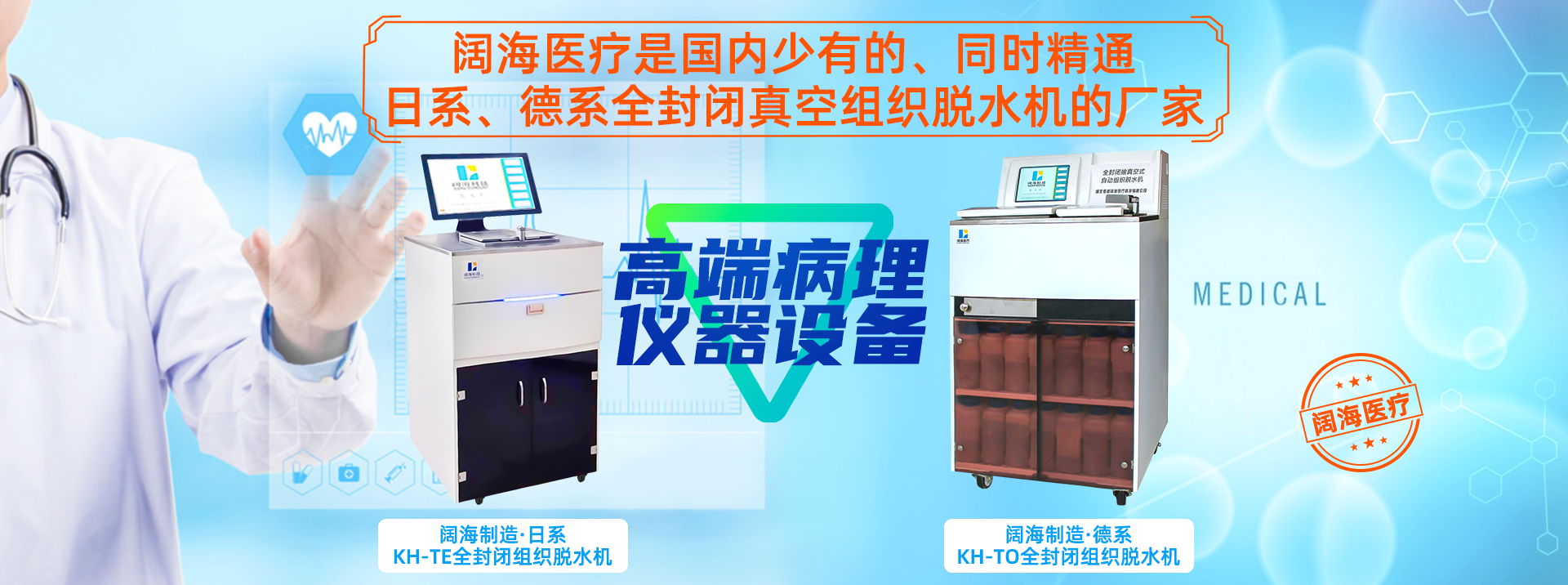 在病理儀器領域,闊海不但成功開發出行業公認的“病理先進技術項目”———全封閉抽真空脫水機,還在國際、國內同行業中,針對醫療設備終端使用客戶,推出“全封閉抽真空脫水機,真金不怕火煉活動”。公司擁有近百項專有技術,曾獲得過17項國家專利、9項軟件著作權,使產品一直保持著技術上的先進性和實用性